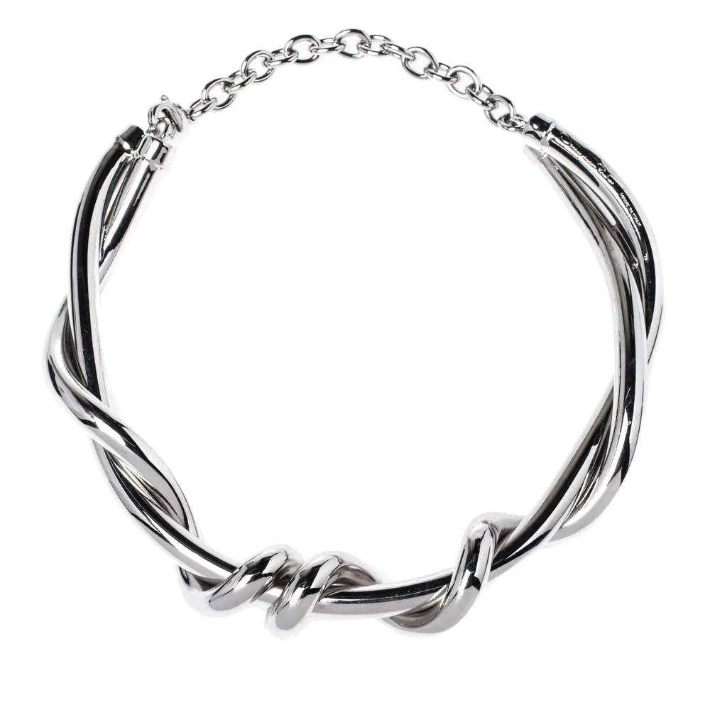 Opt for this chic and bold necklace this season from the house of Oscar de la Renta. It features a twist design on the silver-tone metal body and secured with a lobster clasp closure that can be adjusted as required. Wear this beauty with plunging necklines or off-shoulder silhouettes for a trendy look.