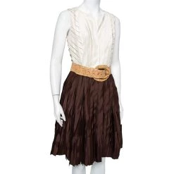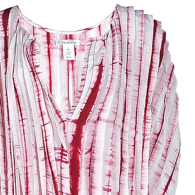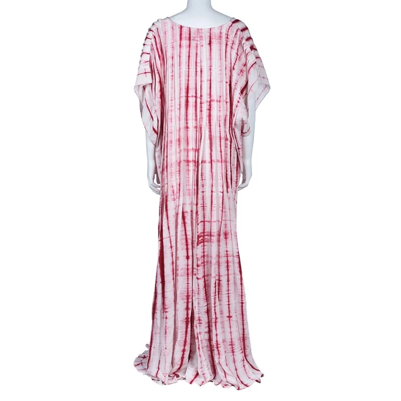 Splash the brilliant hues in this gorgeous Oscar de la Renta Kaftan. It has been crafted in silk and features an exquisite tie-dye print all over. The pleated pattern looks simply catchy and flares below the waist go well with the overall look of the dress.