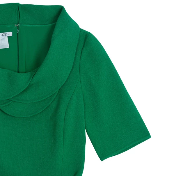 This Oscar De La Renta dress is simply beautiful! Crafted from a silk blend, the dress features a tiered petal collar, detachable green belt, short sleeves and hook fastening at the back. Paired up with your favourite sandals, this dress is perfect for afternoon get togethers.Original Retail Price: US $2,190