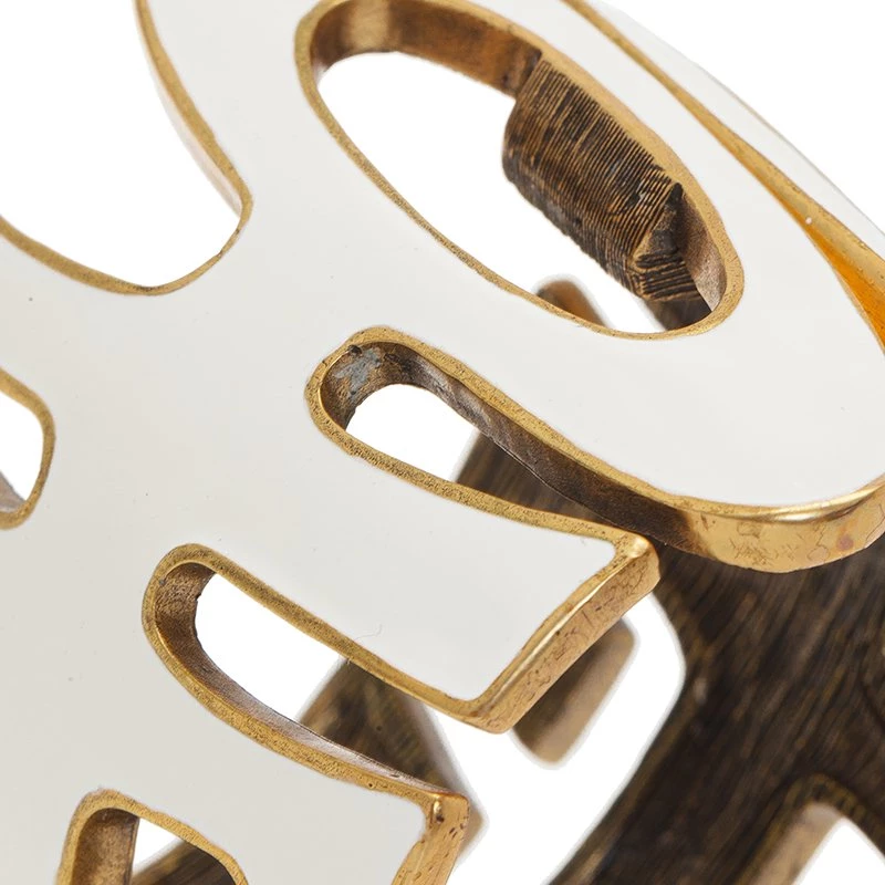 This wide cuff bracelet by Oscar De La Renta blends subtle elegance and fun into one. Made from gold tone metal with white enamel design, it will look good paired with any outfit.