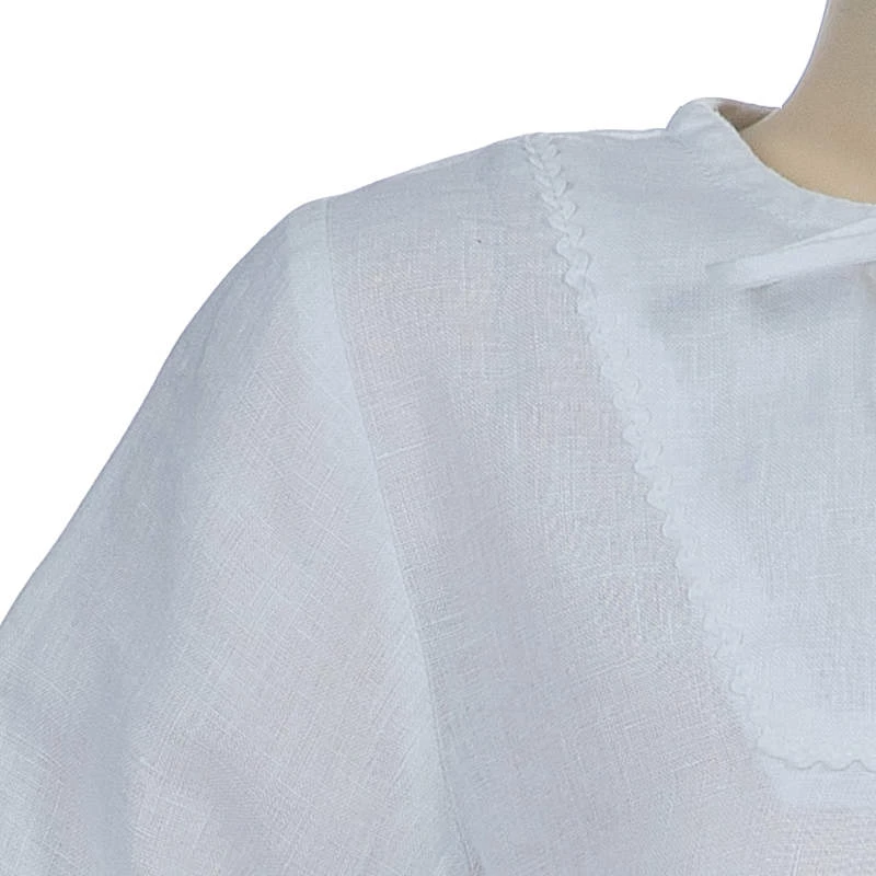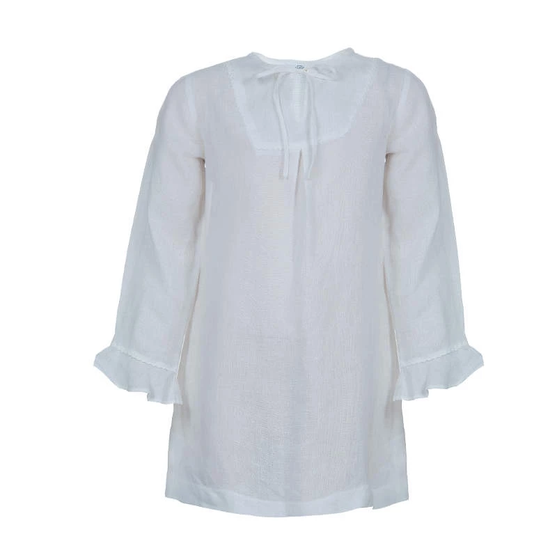 Oscar de la Renta has ensured comfort for your kid with this white linen dress. Crafted from cotton, it features a round neck with string fastening and long sleeves with frilled cuffs.