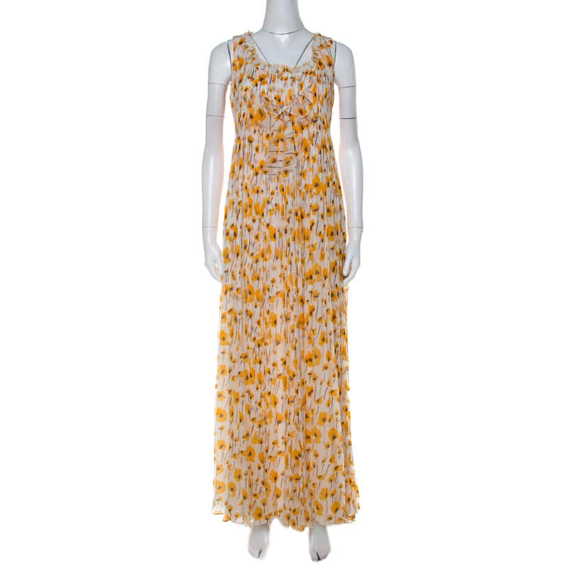 In a world full of high-fashion brands, this Oscar De La Renta dress surely stands out. A cute number like this yellow piece requires nominal efforts to look like a million bucks. Tailored from silk, the dress is designed in a maxi length and is beautifully adorned with floral prints all over. This piece lends great style and a modest finish.