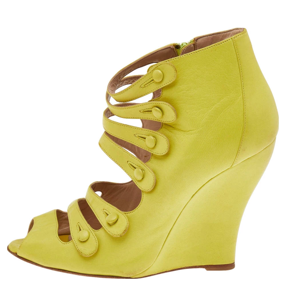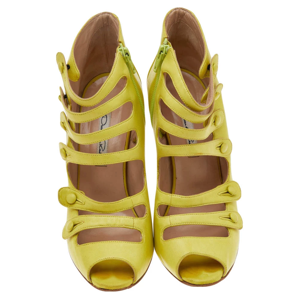 Set on 11.5 cm wedge heels, these Oscar de la Renta sandals offer the right mix of comfort and style. They have been crafted from leather in a peep-toe silhouette and feature multiple straps for a caged effect and a side zipper for easy fitting.