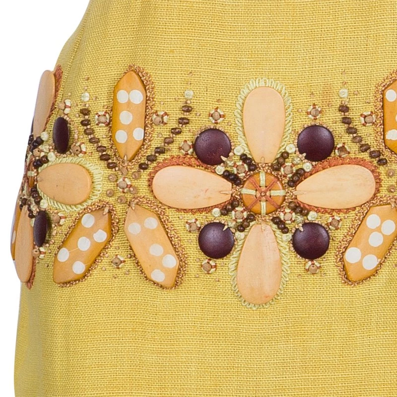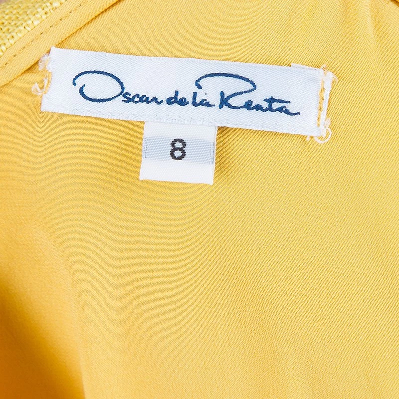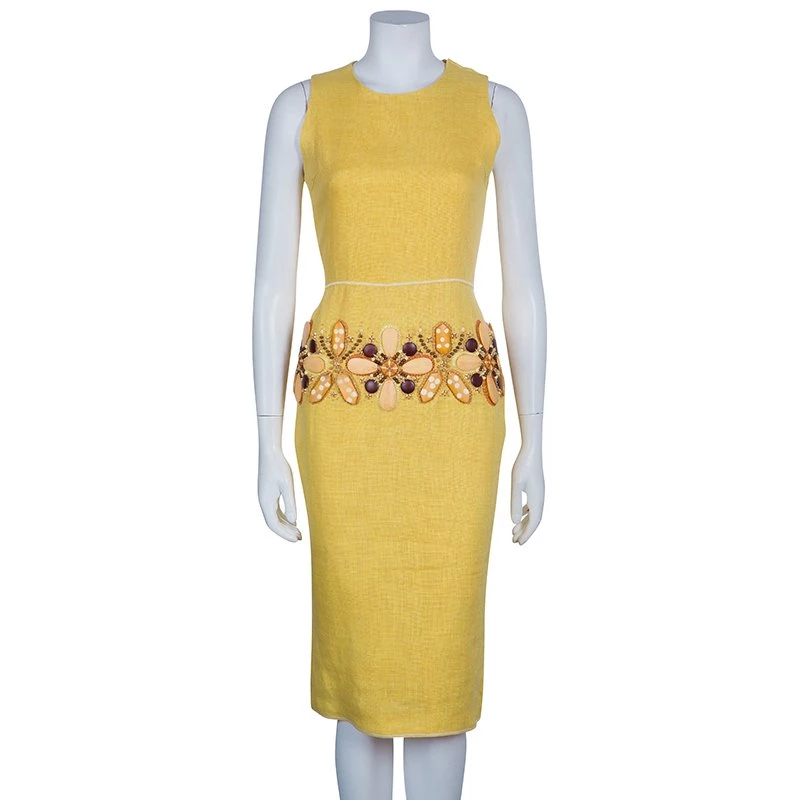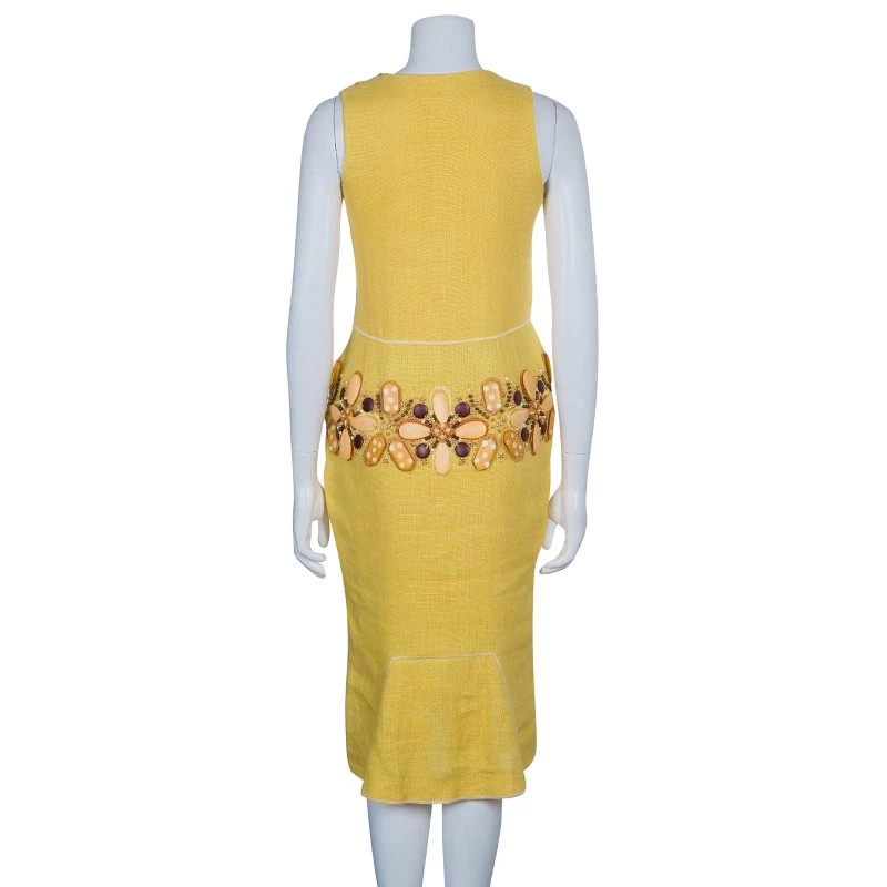 Crafted from linen, this Oscar de la Renta dress makes your day bright and cheerful. This sleeveless design features a round neck, with an exquisitely embellished waist line.