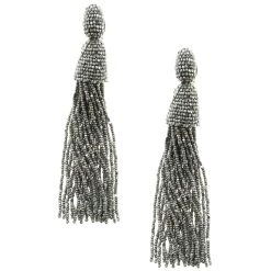 Oscar De La Renta Grey Beaded Long Tassel Clip-on Earrings For Women