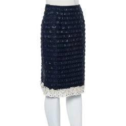 Oscar De La Renta Navy Blue And White Striped Oversized Cardigan L For Women
