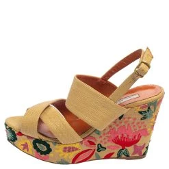 Oscar De La Renta Beige Patent Leather And Python Platform Cross Strap Sandals Size 39.5 For Women