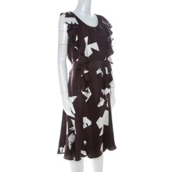 Oscar De La Renta Brown & Bronze Silk Knit Cardigan L For Women