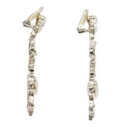 Oscar De La Renta Bow Drop Crystal Silver Tone Clip-On Drop Earrings For Women