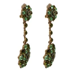 Oscar De La Renta Green Crystal Clip On Long Earrings For Women