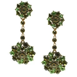 Oscar De La Renta Jeweled Green Crystal Clip On Earrings For Women