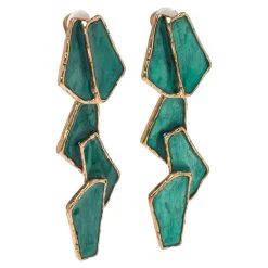 Oscar De La Renta Green Enamel Gold Tone Long Clip On Earrings For Women