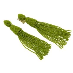Oscar De La Renta Grey Beaded Long Tassel Clip-on Earrings For Women