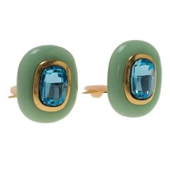Oscar De La Renta Green Resin Blue Crystal Clip On Earrings For Women