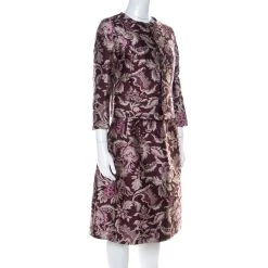 Oscar De La Renta Burgundy Floral Jacquard Skirt Suit M For Women