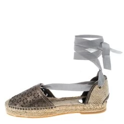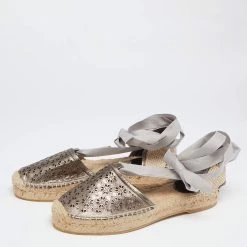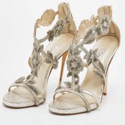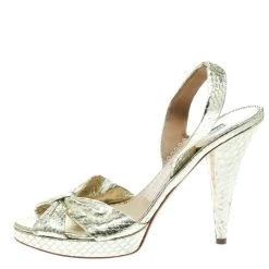 Oscar De La Renta Metallic Gold Embossed Elaphe Leather Penelope Peep Toe Sandals Size 39 For Women