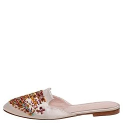 Oscar De La Renta Light Brown Leather Embellished Slingback Platform Sandals Size 38 For Women