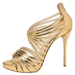 Oscar De La Renta Metallic Gold Leather Cork Heel Platform Slingback Sandals Size 37.5 For Women